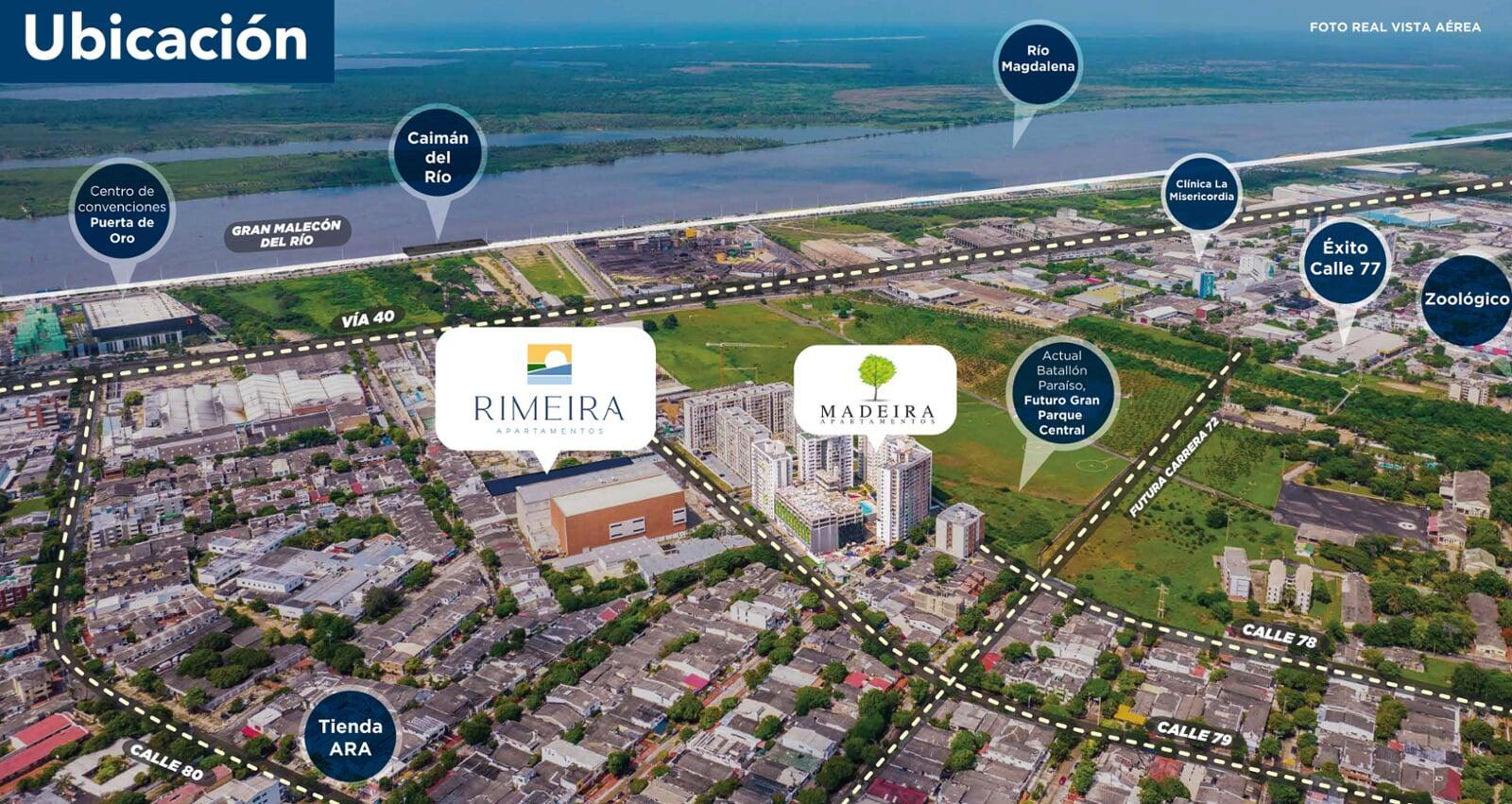 Rimeira Apartamentos es sinónimo de armonía, tranquilidad y confianza. Un espacio ideal para construir tu futuro cargado de grandes experiencias. Somos un complejo de apartamentos que contará con 2 torres exclusivas, ubicación estratégica y acceso a un entorno natural muy cerca al Gran Malecón del Río. Queremos convertirnos en tu espacio seguro, tu hogar. Ubicado en el barrio Paraíso, cerca de vías principales con diferentes rutas de transporte y lugares estratégicos del Norte de Barranquilla. Gozará de apartamentos con áreas desde 58 m² hasta 81 m², de 2 y 3 alcobas, totalmente acabados y con parqueadero incluido. Espectaculares zonas comunes con vista amplia a la ciudad y al Río.